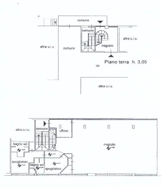 Al piano primo l' immobile ( libero su 4 lati), è dotato di ufficio, doppi servizi e due locali spogliatoi con impianto di riscaldamento autonomo; al piano terra con doppi ingressi negozio dotato di scala a chiocciola che collega i due piani